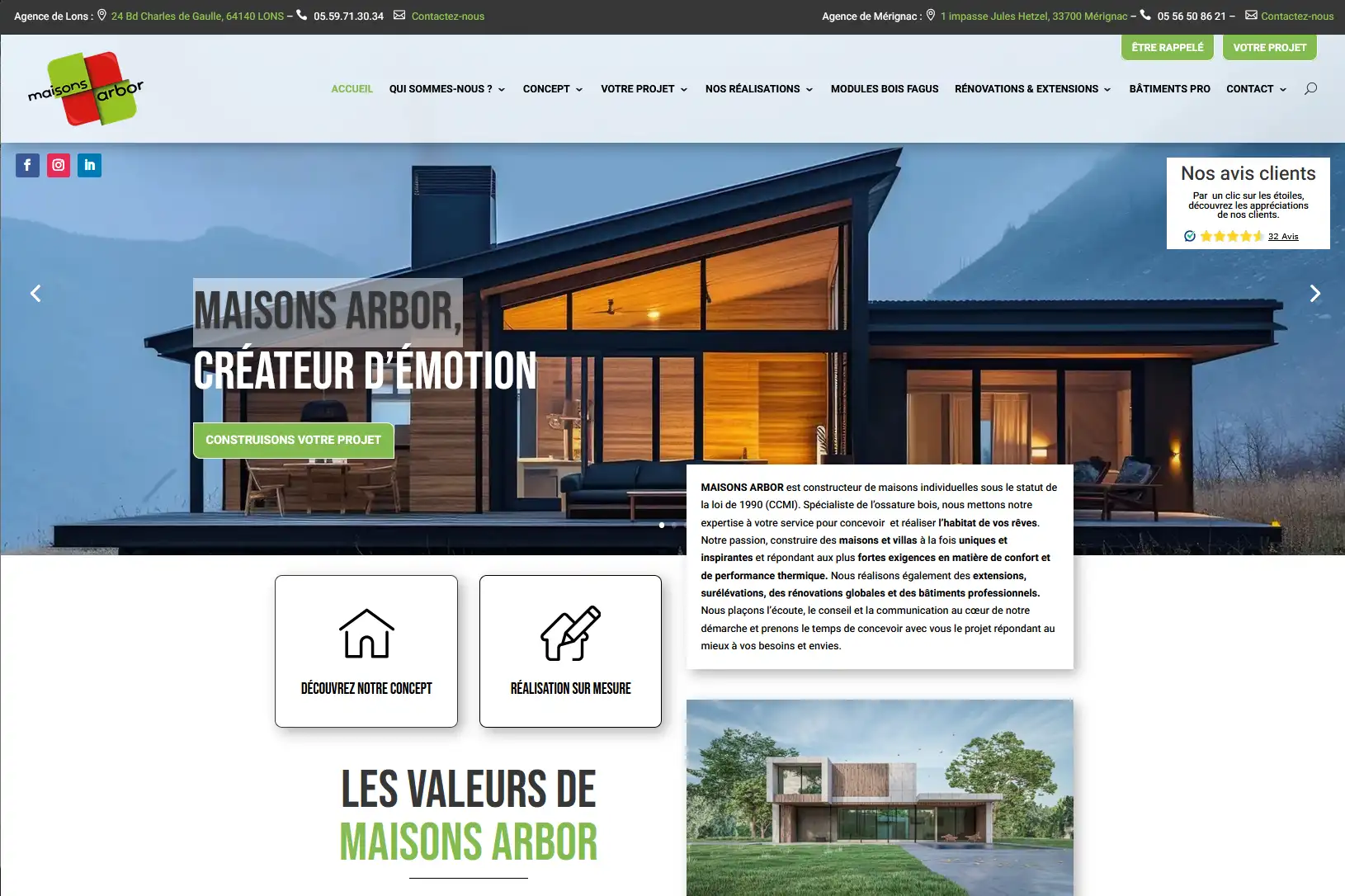 Le constructeur bois Maisons Arbor modernise sa présence en ligne avec un site internet entièrement repensé, conçu et réalisé par l’agence de communication SLCOM, spécialiste de la communication pour le secteur du bâtiment.